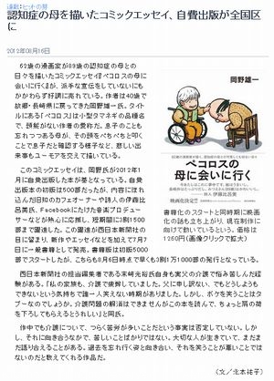 HomepageWORKS kitamocchi 13年 ago Categories: WORKS 【日経トレンディネット・ヒットの芽】認知症の母を描いたコミックエッセイ、自費出版が全国区に 記事アップ。 記事を書くときは、自分が好きなものをと思っていますが、今回もしかり。 この本がどんどん売れて、介護というものへの向き合い方を「こういうのもアリだよね」と思う人が増えれば、精神的な負担は減るのでは?と思っています。 L25mobile/WebR25:アイスキャンデーにビスコッティ レトロ自転車の移動販売を大調査 » « 【五反田】刀削麵の旅はやはり辛い麵を食べてこそ?西安飯荘編 Tags: 介護日経トレンディネット本 kitamocchi: Related Post 【横浜・八景島シーパラダイス】水族館で魚釣り! 釣ったらその場で調理、手軽に挑戦できる“海育”体験プログラムを紹介 都市と自然をつなぐ新拠点!アークテリクス ニュウマン高輪ブランドストアが9月12日オープン 【HugKum】大人気「ReFa S CARAT RAY」目元のたるみやクマに、集中的にアプローチ