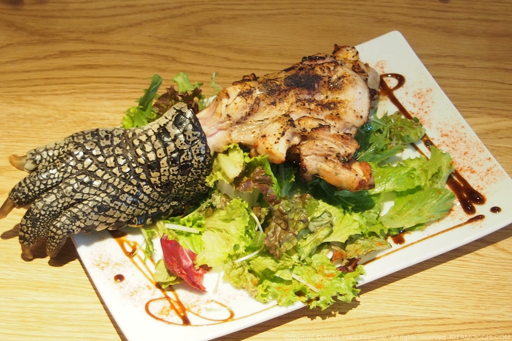ディナー限定ですが、ワニの手羽先が食べられます。3000円するけどね。