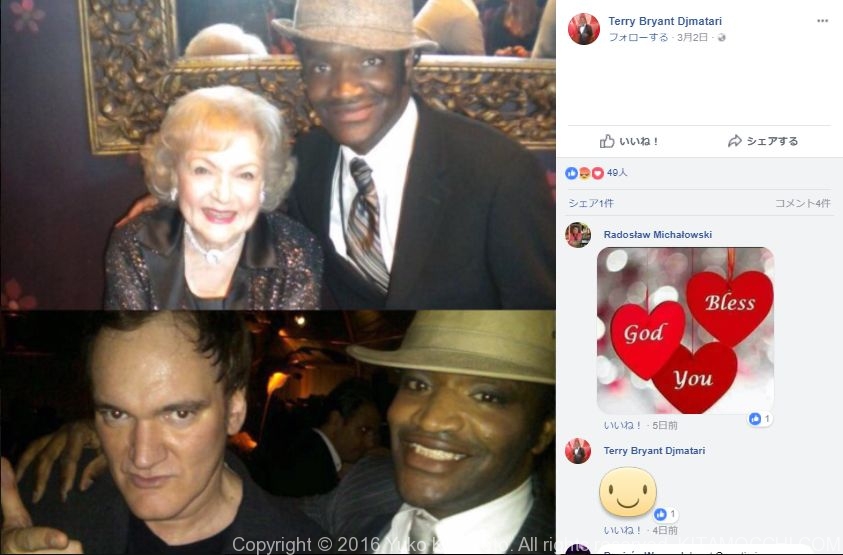 ブライアントのFacebook,InstagramなどのSNSにはタランティーノ以外にも、マライア・キャリー、パリス・ヒルトン、トム・クルーズ、セレーナ・ゴメス、ビヨンセ、チャニング・テイタム夫妻などなど、セレブと撮った写真だらけ。オスカーのアフターパーティに行ったのも今年だけではないようなので、セレブ気取りでやめておけばよかったものを、急になぜ本物のオスカー像で嘘を動画配信する暴挙に出たのかが気になります。