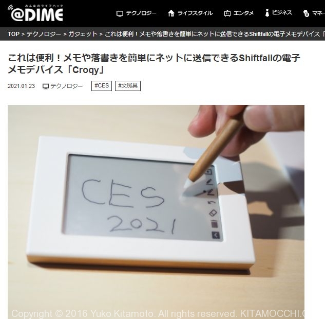 【@DIME】これは便利!メモや落書きを簡単にネットに送信できるShiftfallの電子メモデバイス「Croqy」